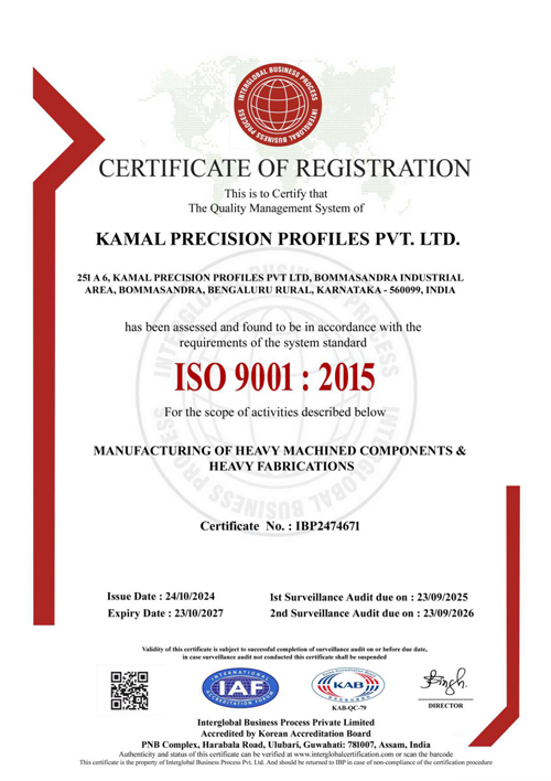 In 1994, Kamal Precision Profiles Pvt. Ltd. came into existence, which was working and directed till date under the direction of Mr. Jagadish.G.Desai (Managing Director), followed by his son Mr. Harshal Jagadish Desai. who has completed his education in Bachelors of Technology in Mechanical Engineering and Master of Science in Supply Chain Management from Hamburg Germany. He will be taking over under the Guidance, Supervision and Support of the companies Managing Director.